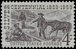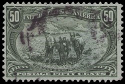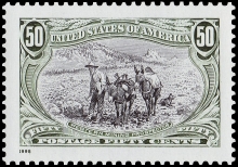 Goldsucher im Westen mit Maultieren & Hund Marke aus dem Satz "Trans-Mississippi" - Weltausstellung Omaha, 1898 Anmerkung: Für den Sammler Bergbaumotive die wohl mit Abstand am teuersten gehandelte Briefmarke |