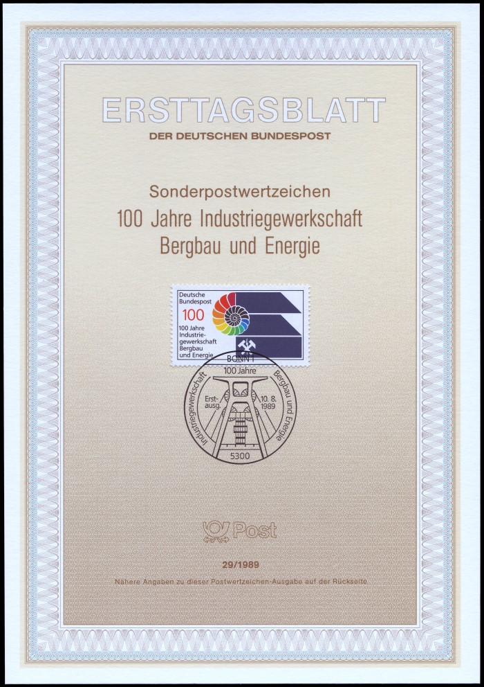 Ersttagsblatt - "100 Jahre Industriegewerkschaft Bergbau und Energie" |