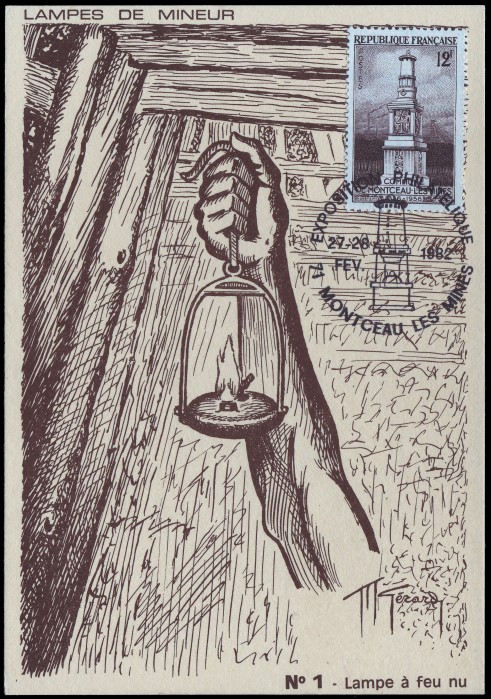 ![]() Maxikarte - "Offenes Geleucht" Das Kartenmotiv zeigt eine französische Tunnellampe. Die Briefmarke zeigt das Bergbaumonument in Montceau les Mines. Den Sonderstempel ziert eine Benzinsicherheitslampe. Entwertet in Montceau les Mines / Frankreich - 1982 |