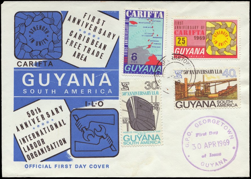 Ersttagsbrief – “50 Jahrestag Internationale Arbeitsorganisation und 1. Jahrestag Karibische Freihandelszone CARIFTA"