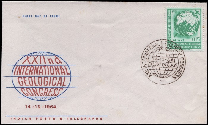 Ersttagsbrief – “22. Internationaler Geologischer Kongress 1964“ in Neu-Delhi/Indien Auf der Briefmarke, dem Briefumschlag und im Ersttagsstempel ist