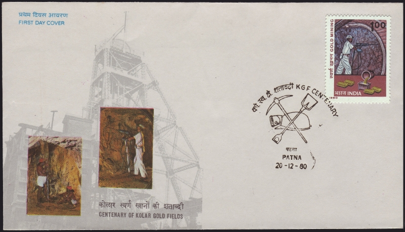 Ersttagsbrief IV - "Gold-Wüste" In den späten 1890er Jahren beschäftigten die Bergbauunternehmen eine große Anzahl von Arbeitern, welche mit schweren Maschinen Golderz förderten. Die Bergleute arbeiteten 12 Stunden Schichten für ca. 3 Pfund pro Woche. Das Motiv zeigt Bergleute im Schacht. Entwertet in Coolgardie, Australien - 1992 |
