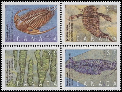 Trilobit (Paradoxides davidis) Seeskorpion (Eurypterus remipes) Blaualge (Stromatolithes) Wirbelloser (Opabinia regalis) |