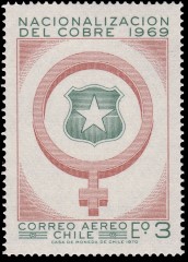 Verstaatlichung der Kupferminen - Kupfersymbol aus der Alchemie /Banner Chile