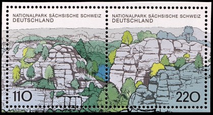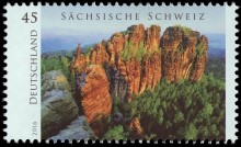 Gesteinsformation der "Schrammsteine“ bei Bad Schandau im Elbsandsteingebirge Marke aus der Serie "Wildes Deutschland" |