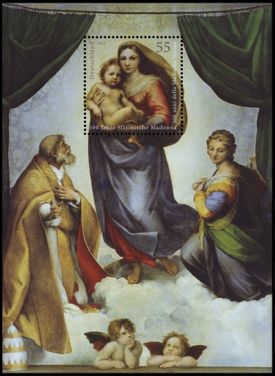 500 Jahre Sixtinische Madonna, auf der linken Blockseite die Heilige Barbara |