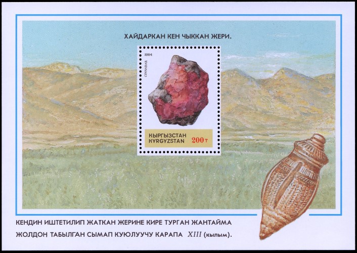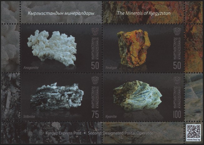 Aragonit - Süd-Kirgisistan; Realgar mit Auripigment - Khaidarkan; Stibnit - Kadamjay; Cyanit - Chatkal District |