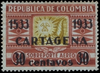 Werte-Überdruck und Aufdruck zur 400 Jahrfeier der Stadt Cartagena