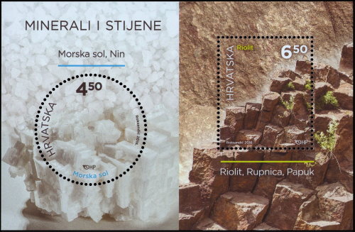 Salzkristalle aus der Meersalzgewinnungsanlage Nin - Säuliger Rhyolith im Steinbruch Rupnica, Papuk-Gebirge Mineralogie & Gesteine - 2018 |