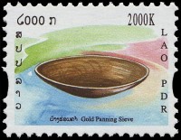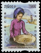 Goldwaschpfanne - Goldwäscherin im Fluß |