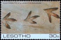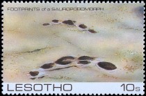 Abdrücke eines saurierähnlichen Tieres | Fußabruck Lesothosaurus | Abdruck eines fleischfressenden Sauriers |
